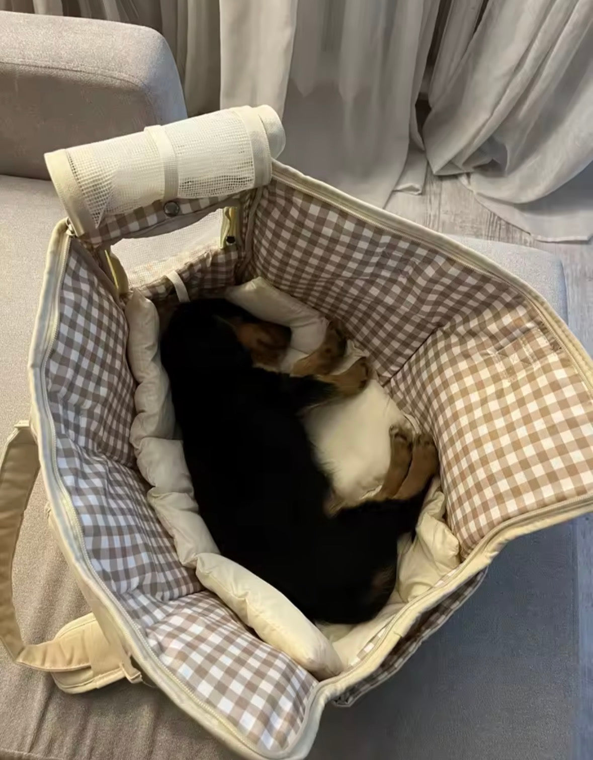 La borsa a tracolla PawBag™️ rende ogni spostamento semplice, sicuro e comodo per il tuo amico peloso e per te.