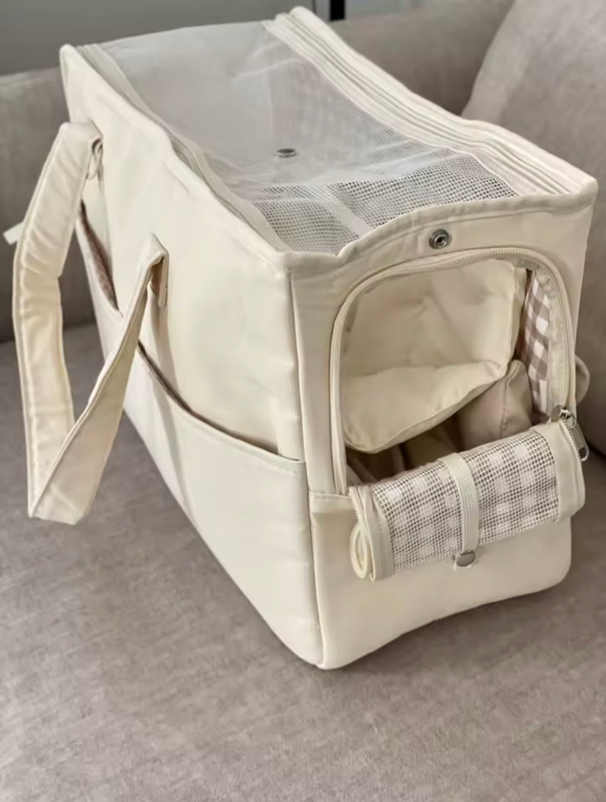 La nostra borsa a tracolla PawBag™️ è realizzata in tessuto resistente e traspirante, rifinita per garantire massima sicurezza e durata.